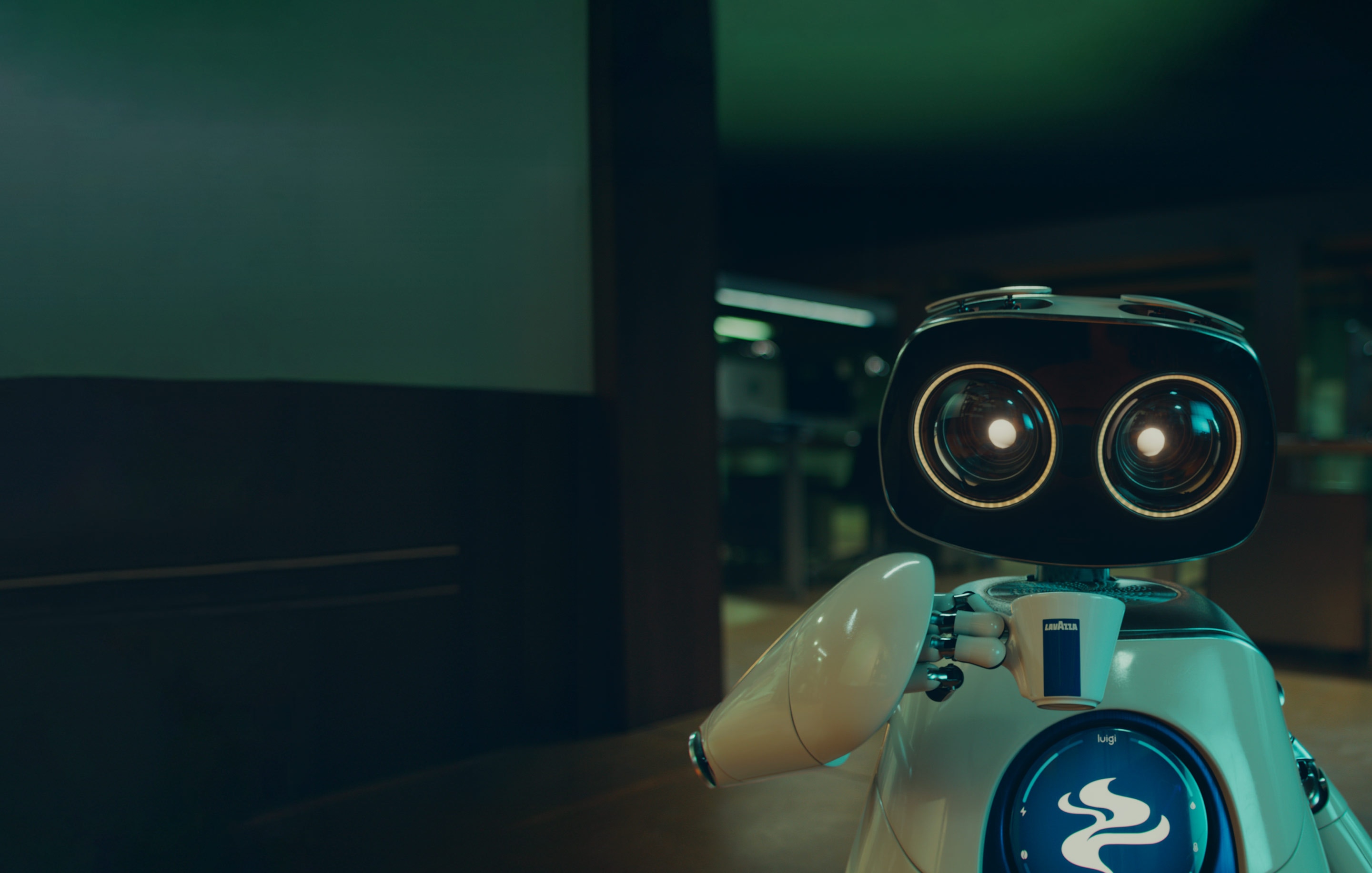 Luigi is a cute office coffee delivering machine that witnesses every day the joy of living the Dolce Vita, an attitude and flavor that inspires the whole world. Thanks to Lavazza coffee, he brings pleasure to his human colleagues dreaming to taste it too. We believe that a cup of coffee is much more than a beverage: it’s a moment to recharge, to share with loved ones. It’s synonymous with pleasure. Luigi’s biggest dream is to taste our coffee and feel the same pleasure, but he can’t. That’s why he's co-starring with comedians and Hollywood stars, Steve Carell and John Krasinski. Together on stage, they enjoy a delightful Lavazza coffee break with Luigi, adding a touch of humor and warmth to our story!